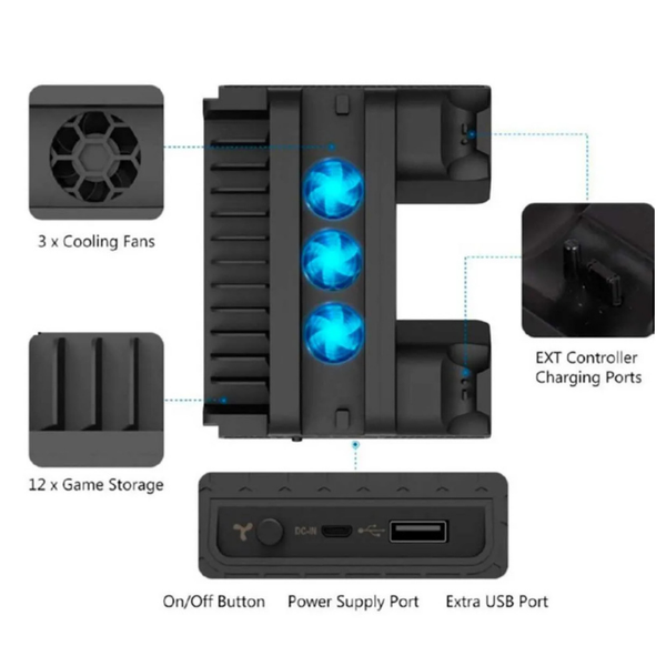 Đế Tản Nhiệt PS4 - Trạm Giải Nhiệt & Sạc Đôi Thông Minh
